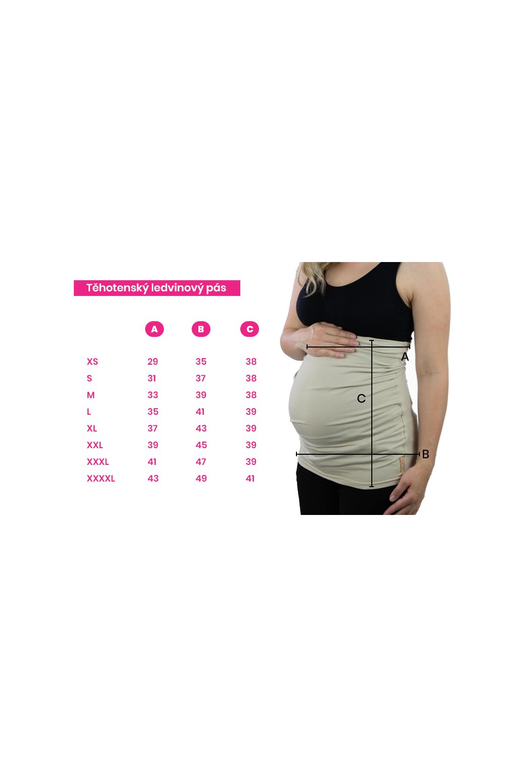 Aby tehotenský pás plnil svoju funkciu, musí pevne obopínať stred tela a dokonale sa mu prispôsobiť. Z toho dôvodu je potrebné zvoliť správnu veľkosť, ktorú možno spočítať tak, že obvod pása a obvod boku po sčítaní vydelíte dvoma. Ak si s voľbou veľkosti neviete rady, neváhajte nás kontaktovať.